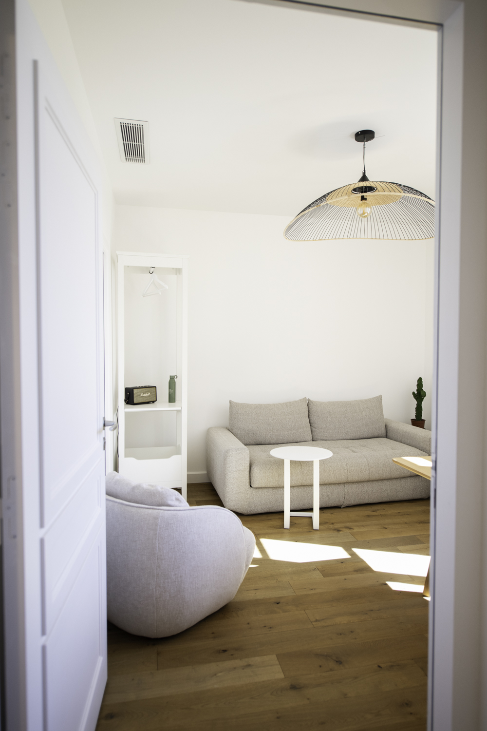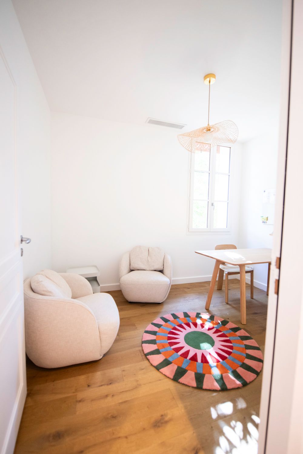 Super confortable, avec ses 9 m2, il est idéal pour vos rendez-vous car il comprend un espace table de travail qui se replie et un coin salon avec fauteuils, table basse et tapis, un whiteboard.